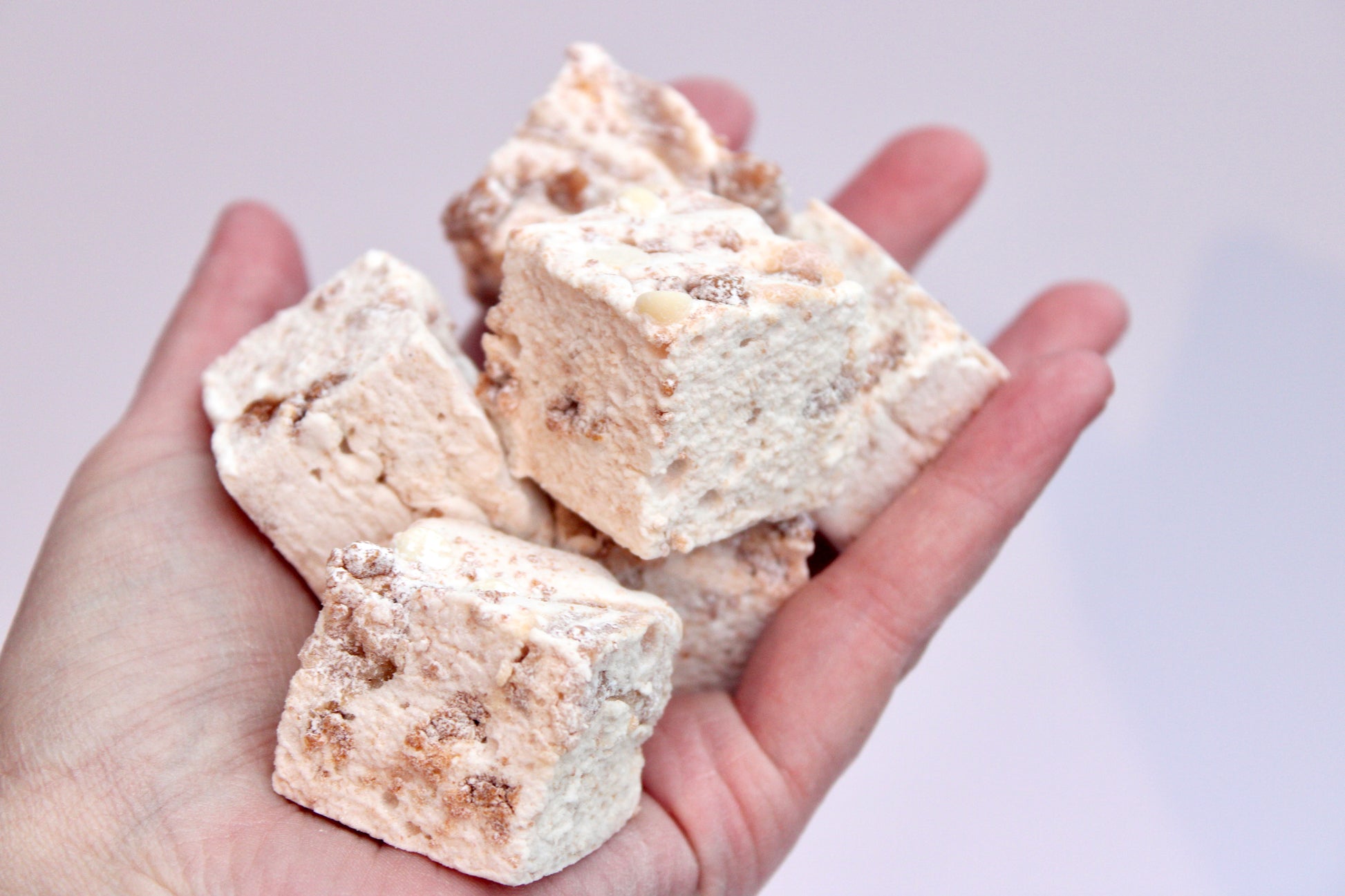 Experience the ultimate indulgence with our Biscoff & White Chocolate Flavoured Mallows. These handcrafted marshmallows combine the beloved spiced cookie flavor of Biscoff with creamy white chocolate for a truly luxurious treat.